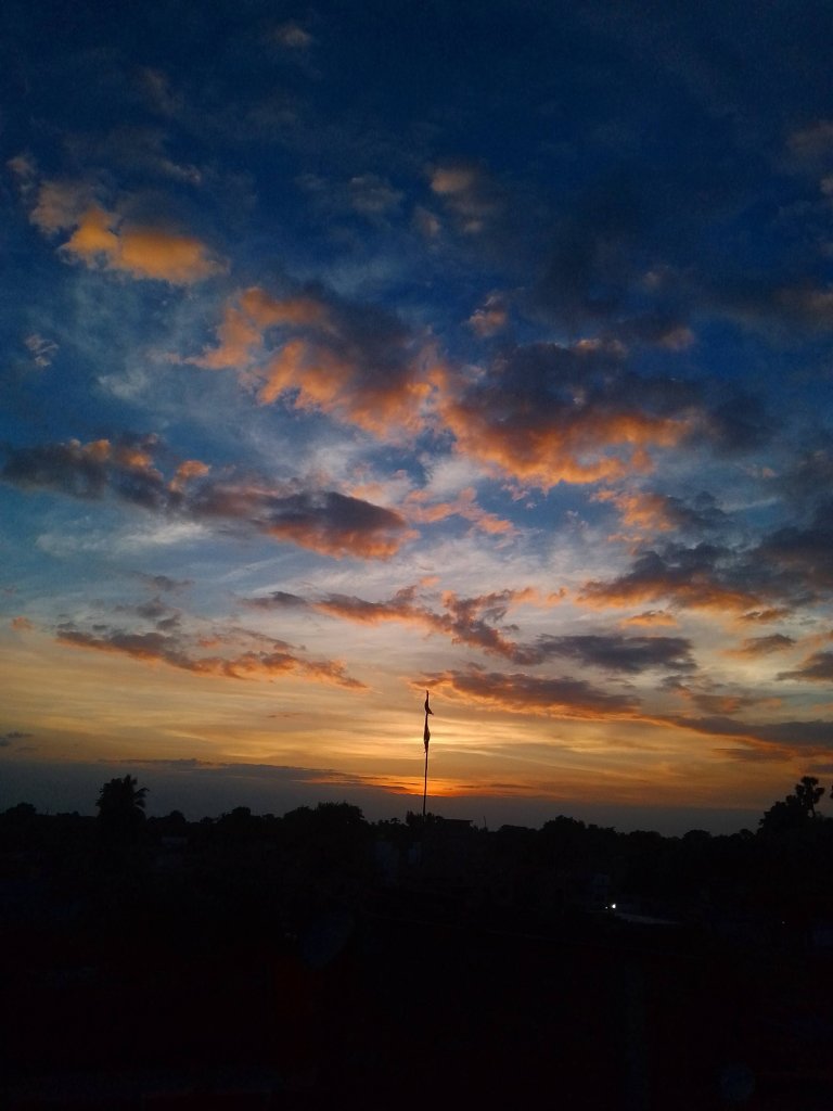 “In the embrace of twilight, the evening sun paints the clouds like lava from a volcano, while a solitary flag stands tall, casting a poignant silhouette. A profound reminder of the interplay between our emotions and the impermanence of existence, where beauty and turmoil coexist in the ever-changing canvas of life.” “The sunset is a beautiful sight, but it’s also a reminder of the passage of time. The flag, however, is a symbol of permanence. It stands for our values and our beliefs, and it will always be there to remind us of who we are.”“When the sun sets, the symphony of life continues. Dispersed clouds half shining in red hue, half grey-black, while a flag’s silhouette stands proudly in the distance. Feel like a painting of serenity and mystery.”“A cloudy night is a perfect time to gaze at the moon. Watching the dancing clouds on a beautiful screen that, the moon makes”